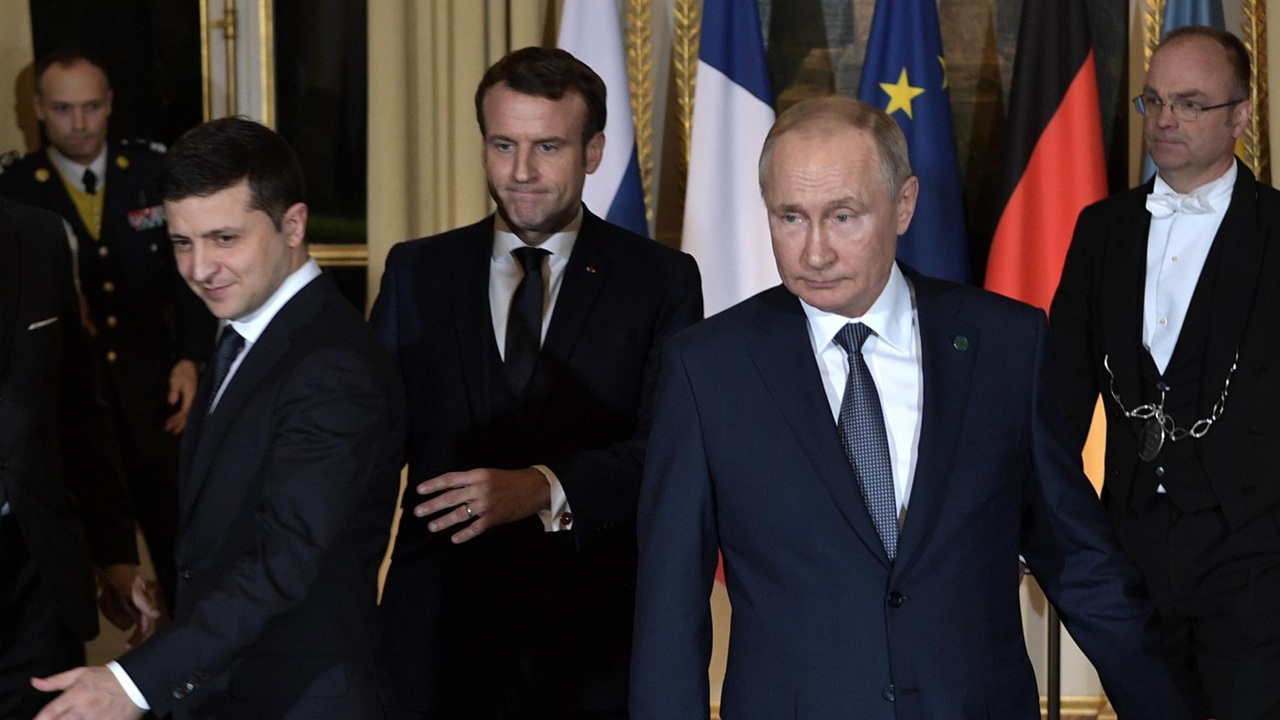 Além de Putin e Zelensky, Que Havia chegado à Presidênia da Ucrânia em Maio Daquele Ano, participando do Encontro o Presidente da Fraça, Emmanuel Macron, Ea Então Chanceler Alemã, Angela Merkel.