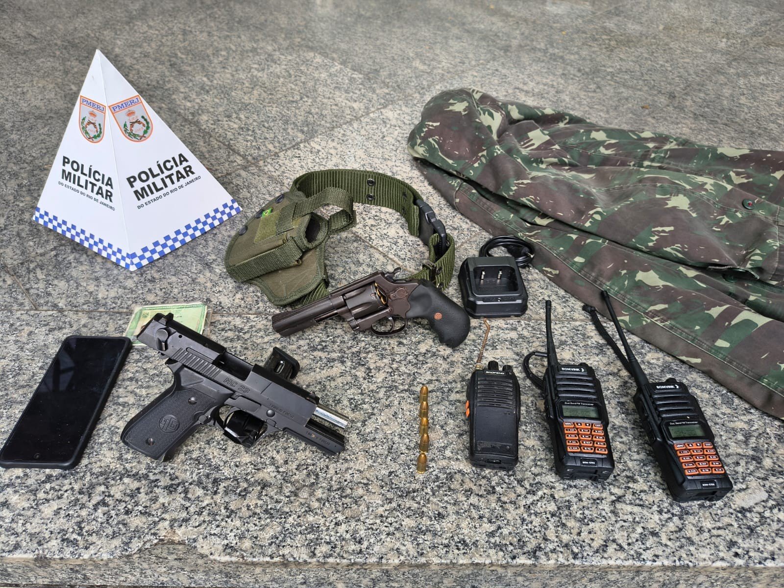 Adolescente é apreendido com armas e munições em Itatiaia Divulgação/Polícia Militar Um adolescente, de 16 anos, foi apreendido com armas e munições na quarta-feira (14) em Itatiaia (RJ). O caso aconteceu no bairro Vila Magnólia. Segundo a Polícia Militar, os agentes receberam denúncias informando que haviam suspeitos armados comercializando drogas dentro de uma residência. Ainda de acordo com a PM, no endereço, eles foram encontrados do lado de fora da casa e ao verem os policiais, fugiram pelos fundos do imóvel. ✅Clique aqui e entre no canal do g1 no WhatsApp A corporação informou ainda que foi solicitado o apoio de outra unidade e também, um mandato de busca e apreensão. As equipes aguardavam o mandado ser expedido, quando o adolescente apareceu na janela da casa e se rendeu. Em seguida, os policiais entraram na residência e encontraram uma pistola calibre 9 milímetros, um revólver, um carregador para rádio, um coldre, um celular, uma gandola e três rádios comunicadores. O adolescente e todo o material apreendido foram encaminhados para a delegacia de Itatiaia. Ele vai responder por fato analógico ao tráfico de drogas e porte ilegal de arma. Veja os vídeos que estão em alta no g1 VÍDEOS: as notícias que foram ao ar na TV Rio Sul