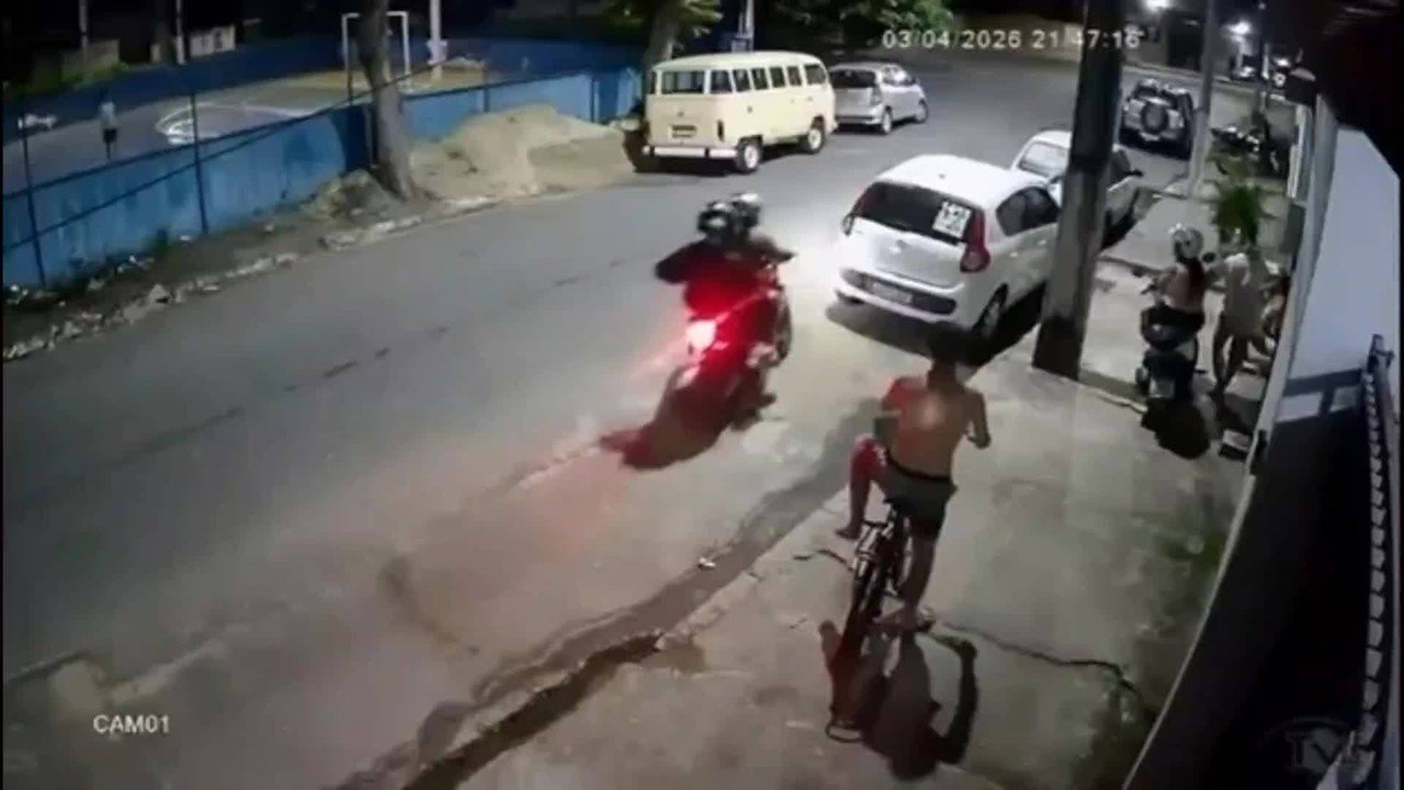 Câmeras de segurança registraram o crime. Campos Ocorrências Um assalto à mão armada foi registrado por volta das 21h45 desta sexta-feira (3), no Parque Alvorada, na região de Guarus, em Campos dos Goytacazes, Norte Fluminense. Até o momento ninguém foi preso. Imagens de câmeras de segurança de uma residência mostram o momento em que um grupo de pessoas está reunido na calçada, quando uma motocicleta vermelha, com dois homens, se aproxima. Com a chegada dos homens, algumas pessoas conseguem fugir do local. Câmera flagra assalto à mão armada em Campos O garupa desce da moto e aborda uma das vítimas, que estava próxima a um carro estacionado. Armado, ele rendeu a vítima e leva os pertences. Após o roubo, o assaltante retorna para a motocicleta, onde a comparsa aguardava, e os dois fogem. 📱 Siga o canal do g1 Norte Fluminense no WhatsApp. Uma equipe de reportagem entrou em contato com a Polícia Civil. O delegado responsável pela área de Guarus informou que, até o momento, o caso não foi registrado na delegacia. A Polícia Militar também informou que o 8º BPM de Campos não foi acionado para a ocorrência, mas destacou que o policiamento segue reforçado na região.