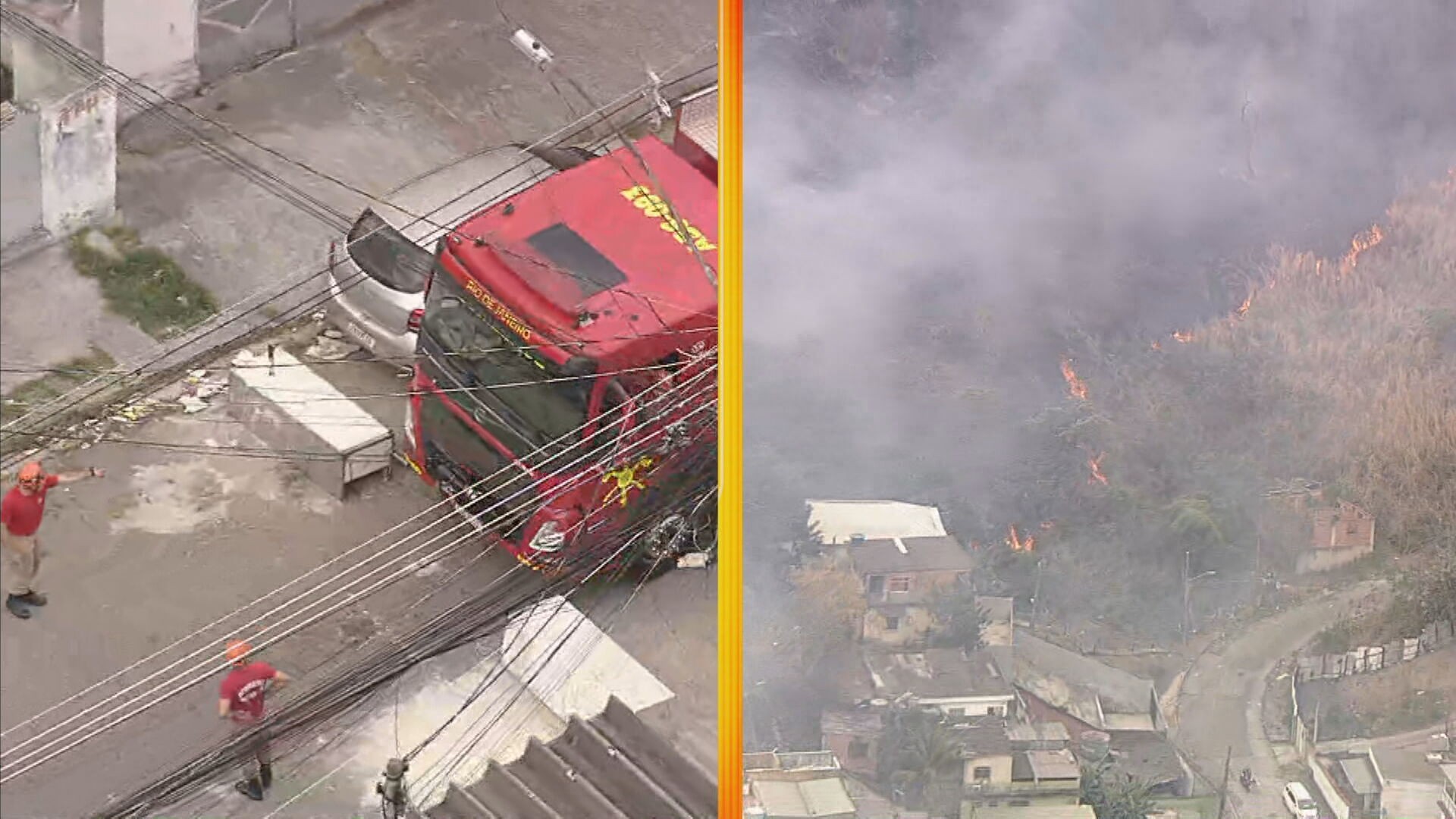 Barricadas impedem passagem de bombeiros para apagar incêndio em Turiaçu O combate a um incêndio em área de vegetação perto de casas em Turiaçu, na Zona Norte do Rio, foi prejudicado pelas barricadas colocadas por traficantes, que impediram a passagem de carros do Corpo de Bombeiros. O Fogo Começou na Manhã Desta Segunda-Fira (22) Na Rua Moisés Santana E, Até como 12h40, Algun Carros Seguiam Bloqueados, Como Mostrou O Globocop Ao Vivo. Bombeiros do quartel do Campinho Foram Acionados às 11h30 E Só Consumuguiram Chegar ao local Mais de Uma Hora Depois. Enquanto ISSO, O FOGO SE ESPALHAVA POR CONTA DO VENTO E CHEGAVA MAIS PERTO DE CASAS QUE FICAM NO ALTO DA COMUNIDADE. Barricadas Atrapalham Chegada de Bombeiros em Incêndio em TuriAçu Reprodução/TV Globo Moradorores Estavam Tentando Controlar como Chamas com Baldes de Água Antes da Chegada dos Bombeiros. Em Uma Rua, ó Caminhão não consequeguiu passar e precisou dar ré, mesmo após Uma removedor de Moradorora Parte da Barricada para Ajudá-Los. O Corpo de Bombeiros emitiu Uma nota Informando que 20 militares atuam na ocorrênia com o apoio de quatro viaturas operationais. O fogo foi controlado às 16h30. Ninguém se Feriu e Nenhuma Casa Foi ATINGIDA. O CENTRO DE OPERAÇÕES RIO ALERTOU QUE A FUMAÇA PODE AFETAR A VISIBILIDADE EM VIAS PRÓIXAS. De Acordo com uma instituição, Há Outros Dois Incênios em Vegetaça em andamento na Cidade: na Linha Amarela, na Altura da Saín 1, Sentido Fundão, e Na Grajaú-Jacarepaguá. Fogo atinge Área de Mata em TuriAçu, na Zona Norte do Rio Reprodução / TV Globo