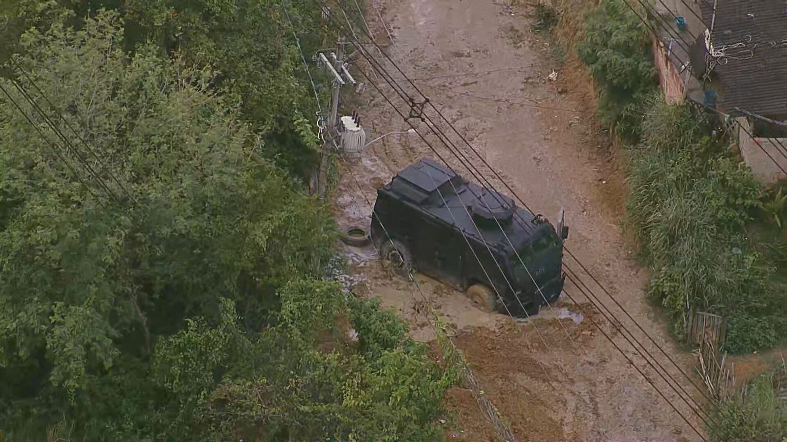 Blindado da PM atola na rua de terra em Belford Roxo Reprodução/TV Globo Um carro blindado da Polícia Militar foi atolado na lama durante uma operação realizada nesta segunda-feira (20) no Complexo do Castelar, em Belford Roxo, na Baixada Fluminense. A ação é conduzida por agentes do Batalhão de Operações Policiais Especiais (Bope) e do 39º BPM (Belford Roxo), com o objetivo de combater roubos de veículos e cargas na região. Caveirão da PM atola na lama durante operação na comunidade do Castelar, em Belford Roxo O incidente ocorreu na Estrada das Pedrinhas, na comunidade Vila Paulina, onde o blindado acabou preso em um trecho de terra. Para tentar retirar o veículo, uma retroescavadeira foi acionada. Até o momento, a Polícia Militar não se pronunciou oficialmente sobre o ocorrido.