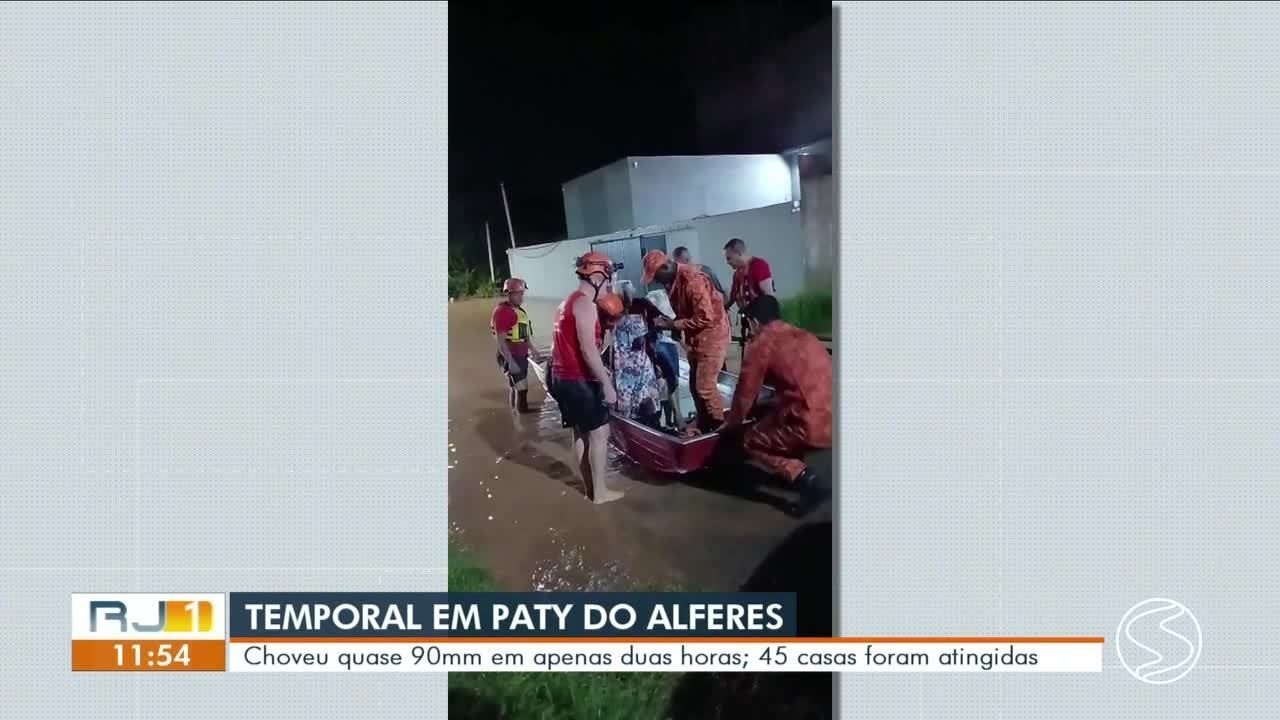Corpo de Bombeiros em Paty do Alferes Divulgação/Tv Rio Sul ”Graças a Deus, nossas vidas foram guardadas”. Este é o relato de Daiana Ferreira, neta de uma das pessoas que foram resgatadas pelo Corpo de Bombeiros durante uma enchente na noite de quarta-feira (4) em Paty do Alferes (RJ). O temporal afetou vários transtornos na noite de quarta-feira. Foram registrados vários pontos de alagamento e quedas de barrancos e ao todo, 88 milímetros de chuva caíram em duas horas na cidade. ”Eu comecei a receber vídeos de Miguel Pereira, da Maravilha e do Centro de Paty e a rua já estava bem cheia. A gente começou a monitorar o rio, minhas tias começaram a contar. Só que até 1h da manhã, estava tudo tranquilo e foi todo mundo dormir”, disse Daiana, moradora do bairro Granja Califórnia. ✅Clique aqui e entre no canal do g1 no WhatsApp “Por volta de 2h40 eles foram acordados por vizinhos e dentro de casa não pretendem tirar nada. Tem 10 anos que a gente passa por isso. Os bombeiros procuraram o barco, tiraram a minha avó de 92 anos e três tias minhas de dentro da casa. Eles conseguiram enganá-las, tudo em segurança. Graças a Deus nossas vidas foram guardadas. Minhas tias até aquela cabana, fogão, armário, cama, primos computador. Meus primos computador de trabalho, celulares e móveis que proporcionam há pouco tempo”, detalhou Daiana. Segundo a Secretaria de Desenvolvimento Social, Direitos Humanos e Habitação da cidade, foram registradas 50 pessoas desalojadas, que procuraram abrigo em casas de amigos ou parentes, e uma família desabrigada, que contou com apoio da administração municipal. De acordo com a Defesa Civil, os bairros mais afetados foram Maravilha, Granja Califórnia, Alto Seco, Garibu, Aquenta Sol, Bela Vista e também, o distrito de Avelar. De acordo com a prefeitura, devido às fortes chuvas que atingiram as cidades, as aulas da rede municipal de ensino foram suspensas para a segurança dos alunos e do corpo de professores. Em caso de alguma ocorrência, os moradores podem entrar em contato com a Defesa Civil da cidade pelo número (24) 98165-0122. Moradores são resgatados por barco fortes após chuvas em Paty do Alferes VÍDEOS: as notícias que foram ao ar na TV Rio Sul