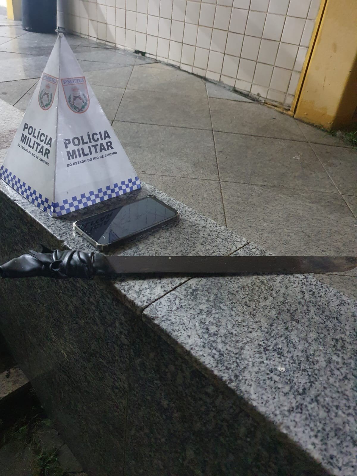 Um facão de cerca de 50 centímetros e um telefone celular foram apreendidos. Divulgação/Polícia Militar Um homem de 26 anos foi preso na noite deste sábado (6) após manter uma companheira, de 30 anos, em cárcere privado e ameaçá-la com um facão em Três Rios (RJ). O caso aconteceu no bairro Habitat Novo Segundo Polícia Militar, a vítima conseguiu pedir socorro pelo WhatsApp do Disque Denúncia da unidade, relatando que estava sendo ameaçada dentro da própria casa. Ainda de acordo com a PM, para que o agressor não suspeitasse da denúncia, a mulher utilizou o recurso “apagar para mim” nas mensagens e passou a simular uma conversa sobre pedido de pizza, questionando sobre o tempo de entrega. ✅Clique aqui e entre no canal do g1 no WhatsApp Ao chegar ao endereço, os policiais precisam arrombar o portão para acessar o imóvel. Dentro da residência, encontrou o agressor com um facão próximo ao pescoço da vítima. Ele foi desarmado, imobilizado e algemado. O facão de cerca de 50 centímetros e um telefone celular foram apreendidos. O homem foi conduzido para a delegacia de Três Rios, onde foi autuado por ameaça e violência psicológica com base na Lei Maria da Penha. Ele possui passagens anteriores por lesão corporal 2022, ameaça 2022, tráfico de drogas 2018 e violência doméstica. Violência contra mulher: como pedir ajuda VÍDEOS: as notícias que foram ao ar na TV Rio Sul