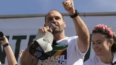 Segundo o ministro, Eduardo Bolsonaro permanece nos EUA para “evitar a aplicação” da lei penal. “Não resta dúvida de que o denunciado, mesmo mantendo domicílio no Brasil, está criando obstáculos para ser notificado”, escreveu Moraes.