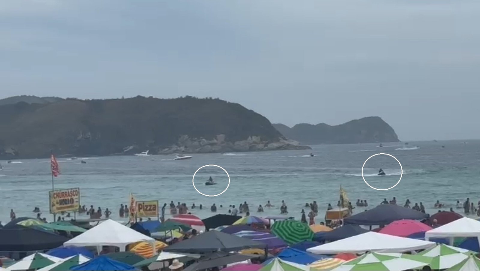 Motos aquáticas invadem área de banhistas na praia lotada em Cabo Frio