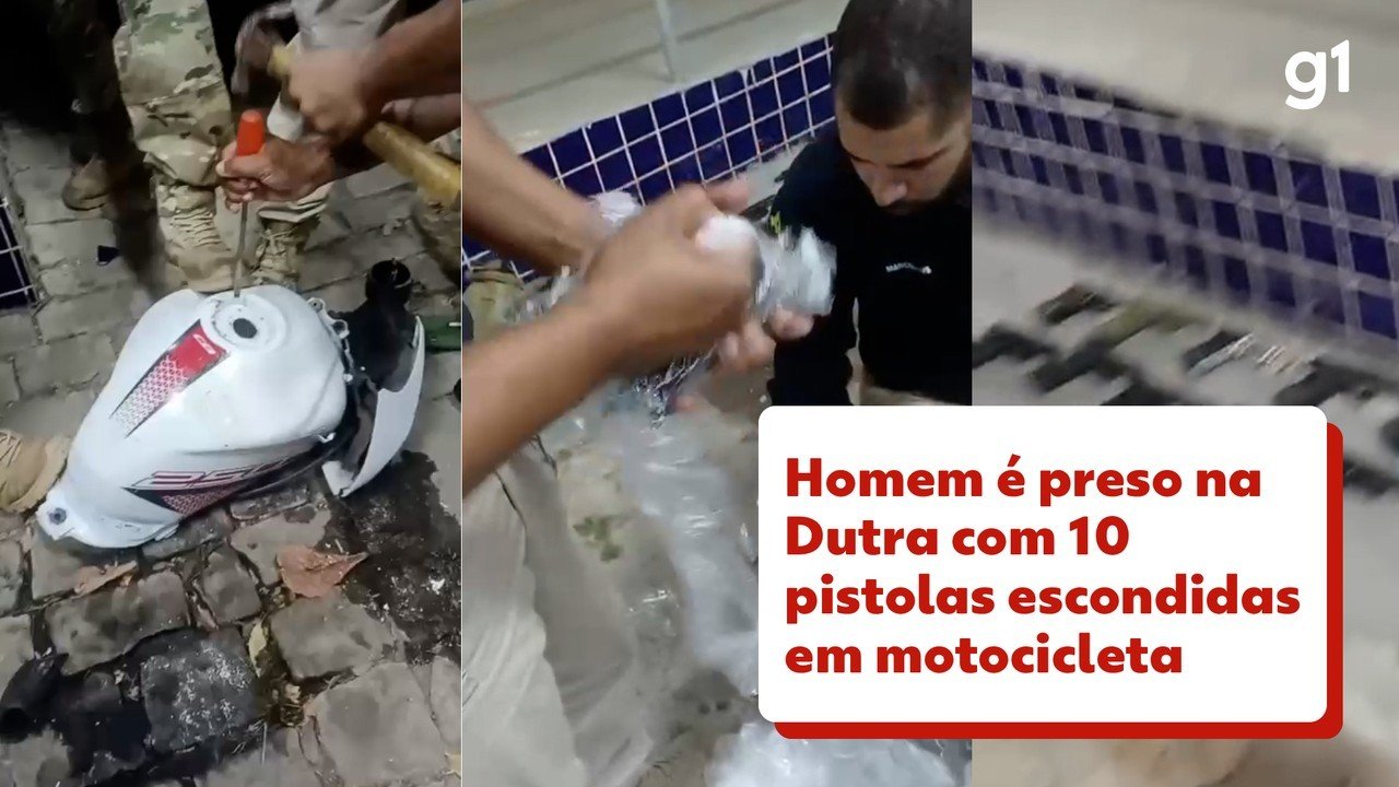 PRF prenda homem com 10 pistolas em moto na dutra, sem rio
