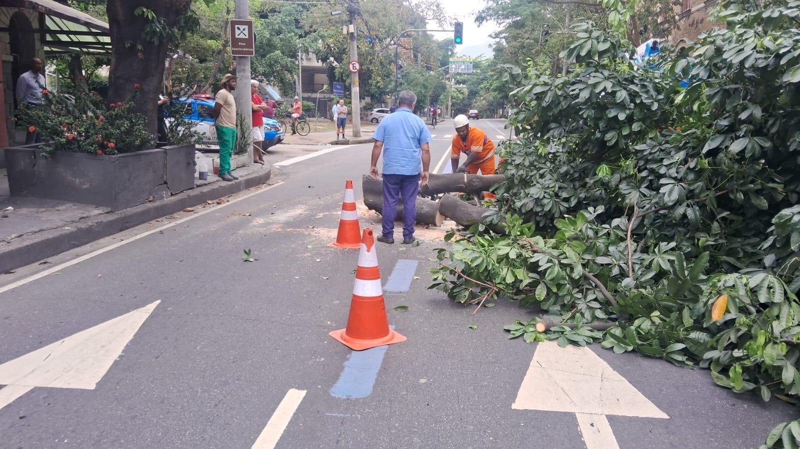 Queda de Árvore interdita parcialmente tráfego na Rua Doutor Satamini, na Tijuca