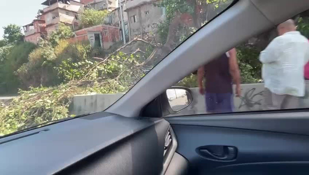 Queda de uma árvore interdita à autoestrada Grajaú-Jacarepaguá