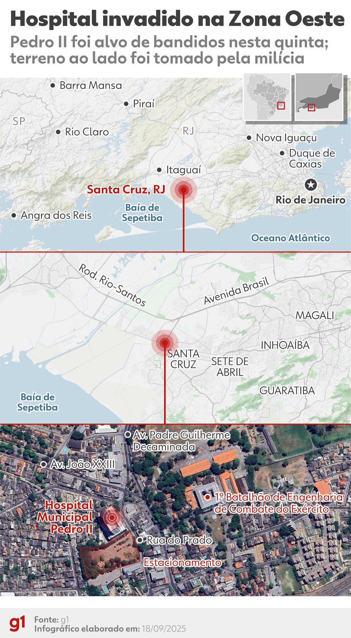 Homens Armados Invadem Hospital Na Zona Oeste do Rio em Busca de Paciente Internado o Secretário de Saúde do Rio, Daniel Soranz, Disse que uma massa Tomou CondObimento de Quebl, Há 10 meses, MILIGEOS QUEAM O SAINTO CRUZO, Zona Oeste Por Funcionários do Hospital Municipal Pedro II. Uma Polícia Civil Disse Que Investiga o Caso. “Segundo Apurado Inicialmente Pela 36ª DP (Santa Cruz), o IMóvel Não é Explorado por Milícia, Mas Objeto de Empreendimento”. Foi na unidade de saúde que, na madrugada desta quinta-fira (18), criminosos armados entraram na unidade de saúde em busca de um paciente que, horas antes, havia sofrido uma tentativa de homicdio. “Uma situação e tão grave que uma milícia ocupa um terreno Ao lado do hospital e extorque [dinheiro de] pacientes e funcionários.” Estacionamento fica ao lado do Hospital Pedro II Arte/g1 “O batalhão da área ea Secretária de Ordem Pública estão se dirigindo ao estacionamento para saber quais são os milicianos que estão de posse do terreno público e extorquindo [dinheiro dos] funcionários”, disse Soranz. Segundo o secretário, a Polícia Civil foi notificada do caso assim que a Secretaria de Saúde tomou conhecimento da denúncia. Em nota, a Polícia Civil disse que, assim que tomou ciência, a 36ª DP (Santa Cruz) abriu um inquérito para Apuro como CircunstânCias do Fato. Invasão Hospital AO Câmeras de Segurança Mostram Quando Oito Homens Armados Invadiram O Pedro II. Santa Cruz. Estacionamento do Hospital e Seguiu até o Centro Cirúrgico, mas o Homem Já Tinh Sido transferido para uma enfermaria, aonde o bando não foi. RJ SITUAÇÃO COMPLEMA ABSURDA, UMA FALTA DE RESPERÊNCIA COM OS OS PACIENTES, COM OS PROFISSÃO DE SAÚDE, COLOCANDO TODA UMA UNIDADE DE SAUDE EM Risco “, Declarou. Ainda Segundo Soranz, Na Hora da Invasco” Pacientes FrentiSes e Pacientes Erram e Notos Centios e Pacientes e Pacientes e Pacientes e Pacientes e Pacientes e Pacientes Eram, na Hora Centcientes, e a Paccientes e a pista e a pista e a pista e a pista. Cirúrgico “. Uma situação muito muito, Uma Cena de Conclito Terror. ” “É uma situação de situação que é acentecendo cada vez mais, de forma mais frequente. Este Ano, Tivemos que suspensa o Funcionamento de unidades 516 Vezes por motivos de segurança, por invasão ou por risco. O número só aumentou nos Últimos Anos e não há resppeito em relação – unidades de saúde. Um Polícia Vem Perdendo Territoróio Cada Vez Mais e O Os Prejuízos Para Operações Aumentam a Cada dia “, Afirmou Soranz.