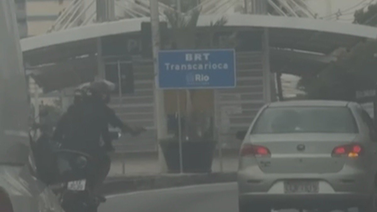 ‘Furou o carro do coroa todo’: homem reage a tentativa de assalto na Praça Seca, no RJ Uma tentativa de assalto terminou com vários tiros disparados em um carro na Praça Seca, Zona Sudoeste no Rio, nesta terça-feira (2). A 28ª DP (Praça Seca) investiga o caso. De acordo com a Polícia Civil, homens armados em uma motocicleta tentaram roubar outra moto na Rua Cândido Benício, perto de uma estação de BRT. O motorista de um carro que vinha atrás tentou intervir e chegou a colidir com uma das motocicletas. Então, os bandidos realizaram diversos disparos contra o veículo, mas o condutor não foi ferido. Uma pessoa, em outro carro, registrou o momento. Em outro vídeo, gravado depois do incidente, uma testemunha demonstra espanto, dizendo: “Furou o carro da coroa todo”. 📱Baixe o app do g1 para ver notícias do RJ em tempo real e de graça A corporação disse que as vítimas foram ouvidas e diligências estão em andamento para apurar a autoria do crime. Imagens mostram o momento dos disparos. Reprodução[/gpt3]