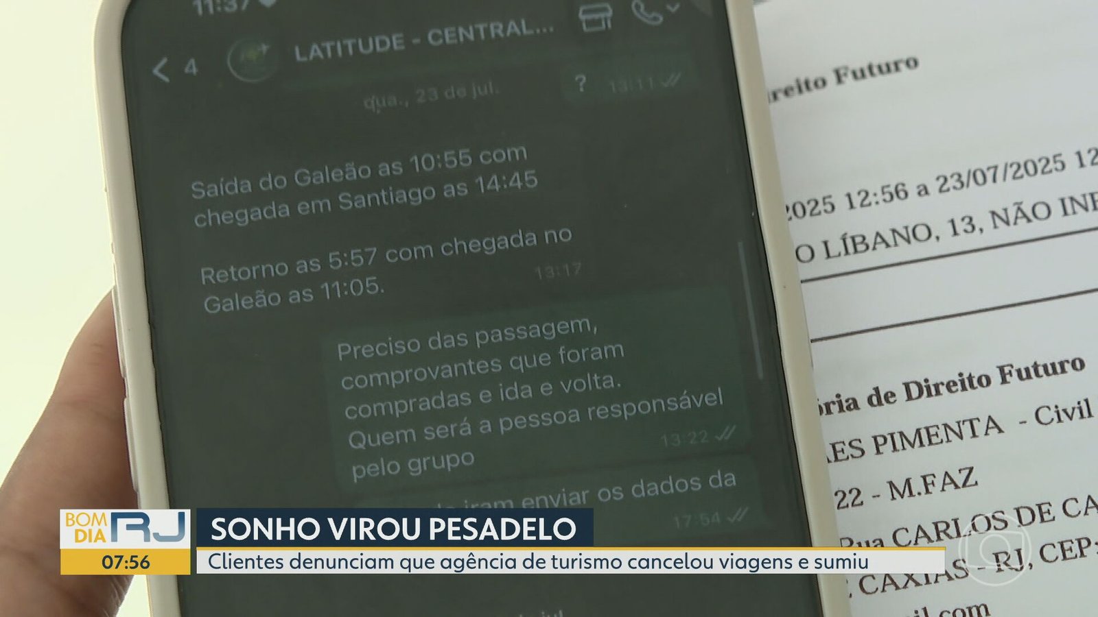 Turistas Acusam Empresa de Turismo de Golpe e Cobram Justiça Após Prejuízos e Sumijo Turistas e Clientes de Uma Empresa de Turismo entrraram com processos contra um empresa APÓS TEREM PACOTES de viagens cancelados por viaostos. Uma assistente administrativa Fabiana Hervaes Pimenta Sonhava em Ver Neve Pela Primeira Vez. Um Viagem internacional para o chile foi planejada durante um ano. “UE Queria Fazer uma viagem interna. Clientes Reclamam de Golpe Praticado por Agência de Turismo Reprodução/TV Globo Mas O Sonho Virou Frustração. “Esse Sonho Ficou Frustrado e Foi Adiiado”, LamentA. “É uma frustração de TODO O GASTO QUE EU TIVE ALÉM DO PAGENTO DA AGÊNCIA. Ó PAGamento de Roupa. Tudo que eu me preparou.” A Agência escolhida por Fabiana para uma latitude ao ar livre, que se apresta nas Redes Sociais Como “Especialistas em Viagens em Grupo”, com “Mais de 8 Anos Conecando Pessoas A Destinos InesQuecíveis”. Fabiana e supera 15 pesoas adjugam pacotes para como férias de Julho. O Pacote Inclui Voo de Ida e Volta, Hospedagem por Cinco Dias e Guia durante OS PASSEIOS NO CHILE. Mas uma semana anterias da viagem, compra de vencedão os problemas. 📱BAIXE o App do G1 para o Notícias RJ em Tempo Real e de Graça “Quando Chegou Uma Semana Antes, eu fui questionário Sobre o Rastreio do Voo porque Geralmento, ViaGens Você TEE TER O ROTEIRO. Tamboma. Segundo Fabiana, como Respostas Da AgÊncia Eram Lentas e Evasivas. “Demorava Para Responder. Quando responde falava: ‘olha, um gente está com problemas na exexão para o poder de poder o Grupo no mesmo voo. Aguarda 24h’. ‘Não Tem como. “Eu continua insistindo. EU ABRI O BOLETIM DE OCORRÊNCIA E PEDI O DHERO. Os clientes da OLOS Relatam Experiencias Semelhantes. Uma Carolina de Turista Maganha Disse que Fechou O Pacote no Dia 7 de Junho. “Disseram que era a Última vaga. Falei épa. Uma professora Roberta Nascimento Comprominar Pacote para Minas gerais com a Irmaã. “UE Adquiri o Pacote no Inicio de Julho No Valor de R $ 2 mil Pagos à Vista No Pix e TRESS DIAS ANTES DA VIAGEM. A ViaGEM Seria EU e Maca Irmã. reembolso. ” Ó Dinheiro, Segundo Ela, Nunca Foi Devolvido. Em Caso de EM, Clientes Conseguiram Embarcar, Mas Não Tainham PassaGem de Volta. “UM MERS ANTES ELES FIZERAM Uma Viagem e Não Pagaram a Volta Das Pessoas. Tiveram que comprar na Hora no Aeroporto”, Relatou Carolina. Especialista Faz Alerta o Advogado Gabriel Britto, Especialista em Direito do Consumidor, Oriente: “Devista o Consumidor Realizar O Devido Boletim de Ocorrência Ante Ao Indício de Prática Deve Contra O Consumidor. Ao Juizado Especial Cível Mais Próximo da Sua Residênia. ” Uma latitude ao ar livre Já foi Processada, Mas os Squios William Amandula da Anúncia e Vitória da Cunha Ferreira Alvim Ainda Não Foram Localizados. Uma justiça do Rio Tenta Intimar A Agência no Endereço Registrado na Estrada do Tindiba, Em Jacarepaguá, Mas No Funciona local Apenas Uma Sala coletiva de Trabalo Temporário. “Muita gente Ficou prejudicada em realização ASSAs Viagens e elees continua vendendo Pacote para 2026. ISSO É MUITO PRESOCUPANTE”, Alerta Fabiana. NOTAS DOS ANVOLVIDOS SOBRE COMO VIAGENS CANCELADAS, uma empresa Latitude ao ar livre Disse que precisou TOAR ESSA ATIMA POR CONTRO DE PROBLEMAS ENTRADAS E DIZ AINDA QUE Foram OFERECIDAS NOVAS DATAS PARA OS CLIENTES Ou uma operação de reembolsoooooso. A Agência Está operando normande, Apesar de uma justiça não conseguir intimar uma empresa. Uma polícia civil desse que o caso da fabiana é investigado pela 35ª dp (campo grande), informou que vítimas serão ouvidas e agente os agentes fazem buscas par Uma Polícia Recomendou ainda que um sunas Possíveis Vítimas Registrem como Ocorrênia.